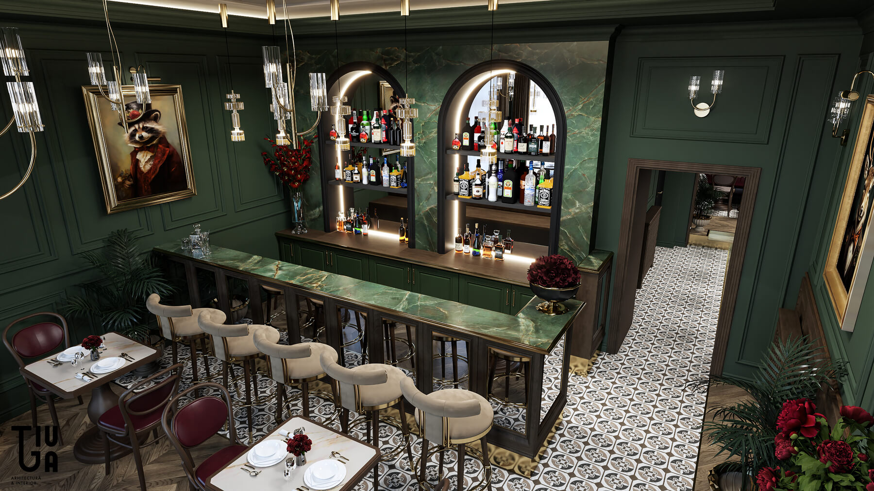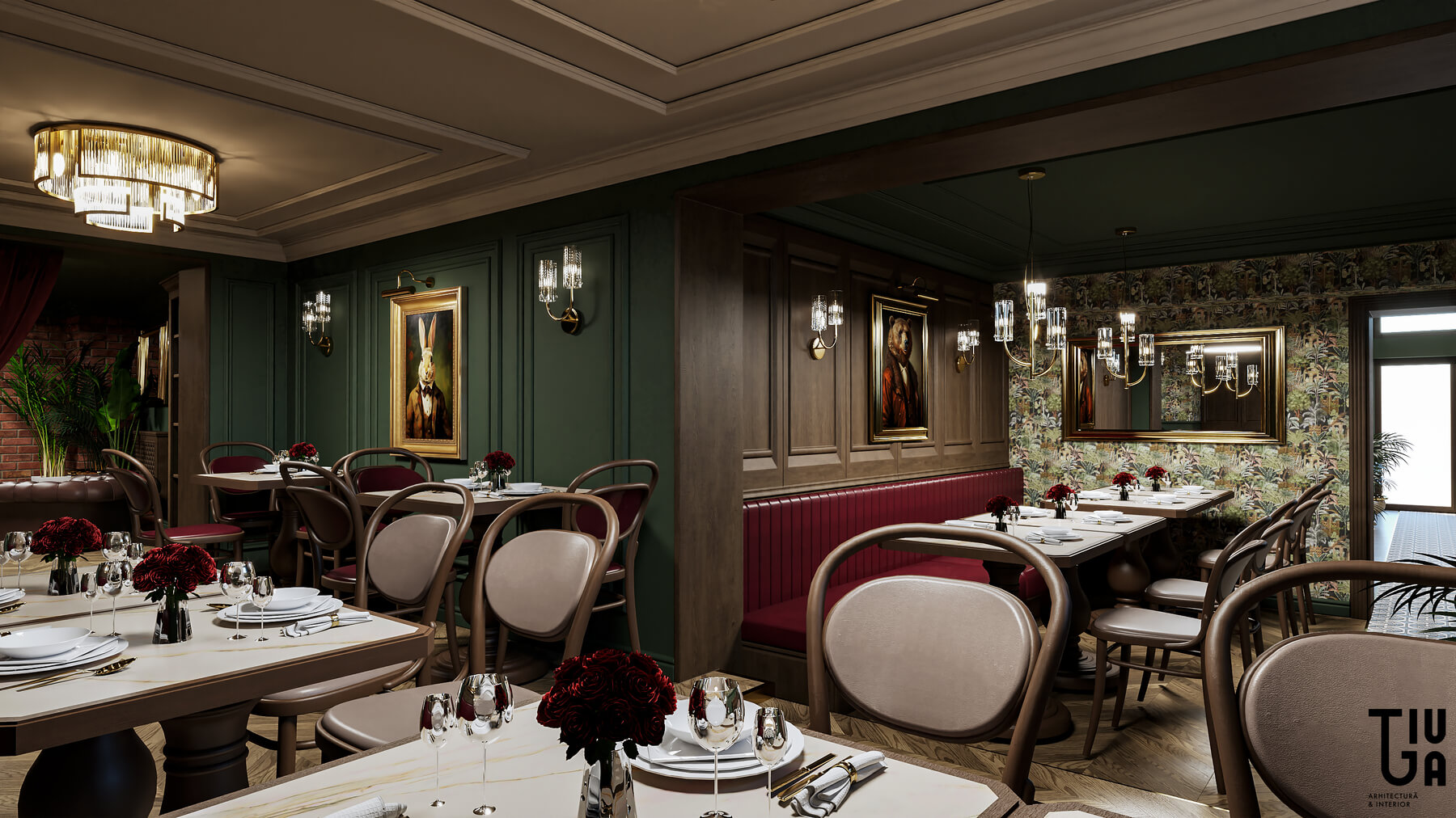 La refonte de TIUGA STUDIO s'inspire des esthétiques françaises, reflétant le désir des clients d'infuser l'espace du charme et de l'élégance évoquant leurs voyages en France. Le design intérieur allie habilement des éléments classiques à des touches modernes, assurant que la rénovation rende hommage au patrimoine de l'ancien Sinaia. La palette de vert forêt ornée d'accents dorés crée une ambiance de sophistication raffinée, fusionnant des éléments nostalgiques avec le luxe contemporain. À travers cette transformation méticuleuse, TIUGA STUDIO n'a pas seulement revitalisé un monument historique, mais l'a redéfini, assurant que le Bistro Caramello se dresse comme un témoignage de l'histoire riche et de l'avenir dynamique de Sinaia.